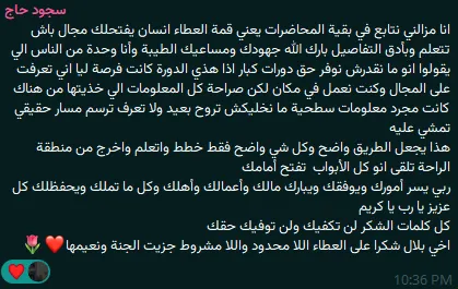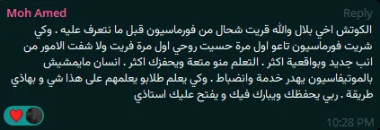 " مصعب يا حبيبي الله يباركلك في علمك أنا كنت أخذت اكثر من كورس قبل الإشتراك في كورسات حضرتك بس مفيش مجال للمقارنة شكرا من القلب ♥️ "